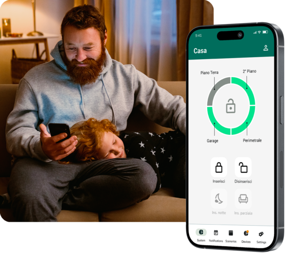 L’interfaccia accompagna passo dopo passo l’installatore nella creazione dell’impianto, rendendo il processo rapido e accessibile anche a chi non installa abitualmente sistemi antintrusione. Un’unica app consente all’installatore di configurare la centrale e monitorarne lo stato da remoto, e all’utente finale di attivare/disattivare l’allarme, ricevere notifiche in tempo reale e verificare eventuali intrusioni.