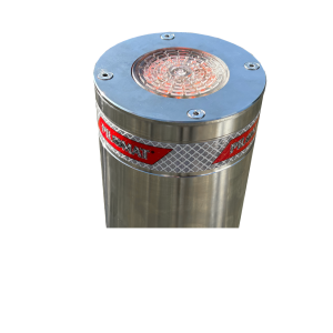 - cilindro mobile realizzato in acciaio inox satinato AISI 304 X5CrNi 18-10 (diametro 114 mm), con altezze fuori terra di 600 mm (modello 114-600A) e di 800 mm (modello 114-800A), con striscia rifrangente sommitale (altezza 22 mm) per una maggiore visibilità e sicurezza.