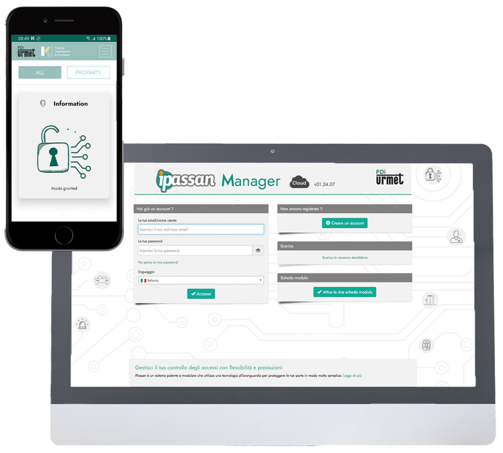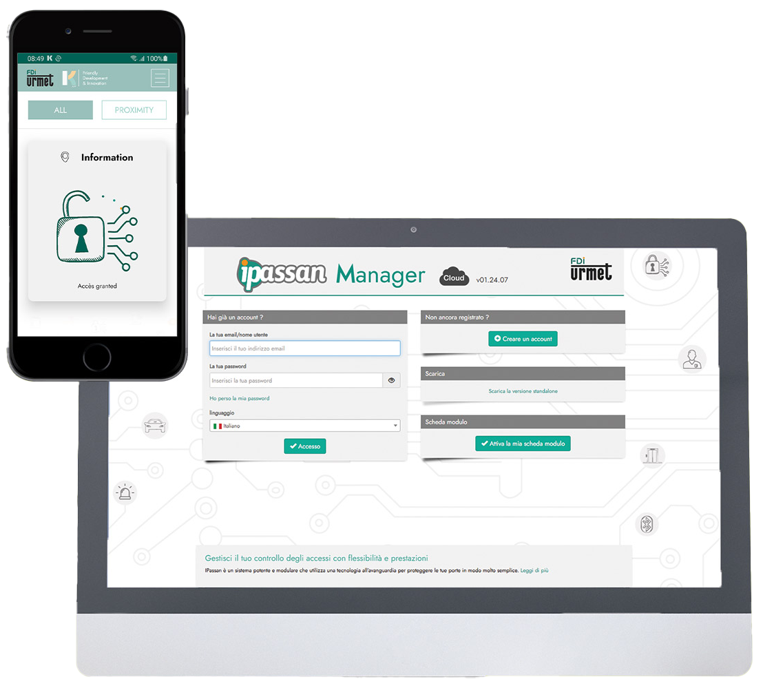 IPassan è un sistema di controllo degli accessi basato principalmente su bus 2 fili 2-Smart, concepito per applicazioni commerciali e residenziali di medie e grandi dimensioni. Si tratta di una soluzione scalabile e multi-tecnologica che offre la possibilità di gestire gli accessi in locale oppure su cloud (integrato con altri sistemi), con la massima sicurezza e versatilità. Supporta un’ampia gamma di lettori di identificazione multi-tecnologia come lettori di prossimità e tastiere con molteplici modalità di accesso (codici, chiavi digitali, biometria ecc.).
