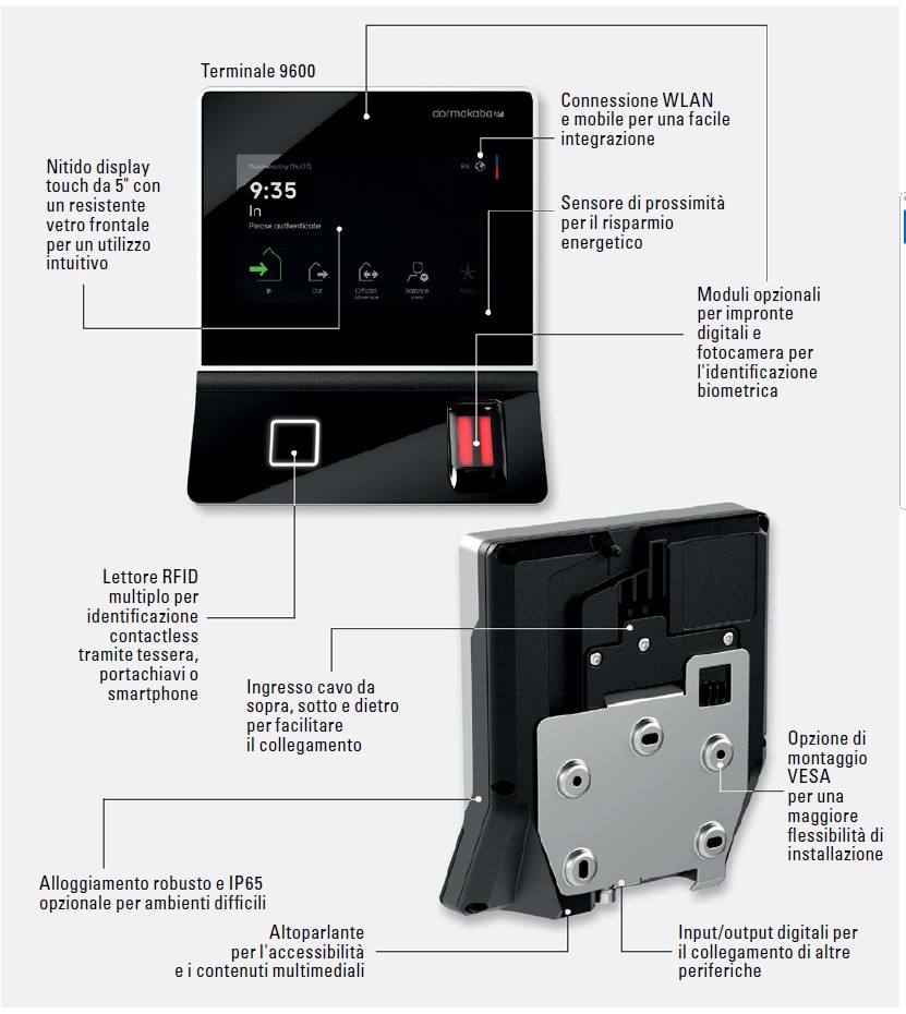 I terminali supportano inoltre il trasferimento delle informazioni di timbratura tramite protocollo sicuro HTTPS al software di gestione e possono integrarsi sia con i software dormakaba sia con quelli di terze parti.