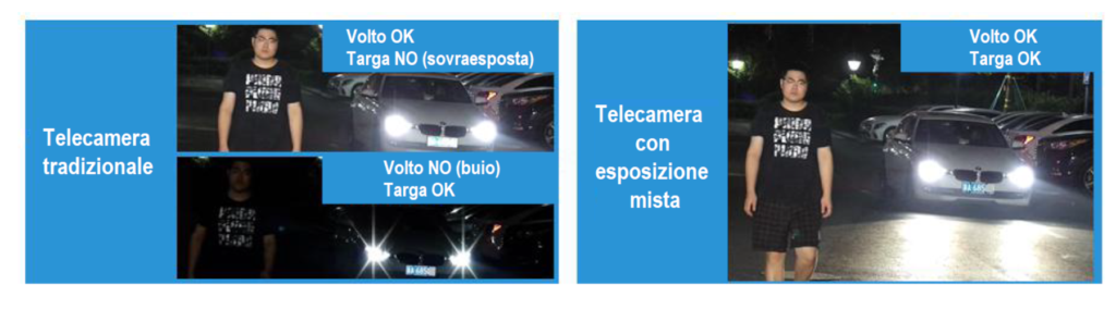 In questi contesti, le telecamere non possono generare un’istantanea ottimale del volto e del veicolo (targa), perché il parametro di esposizione del volto porta a una targa sfocata e sovraesposta, mentre quello del veicolo genera un volto scuro e povero di dettagli importanti.