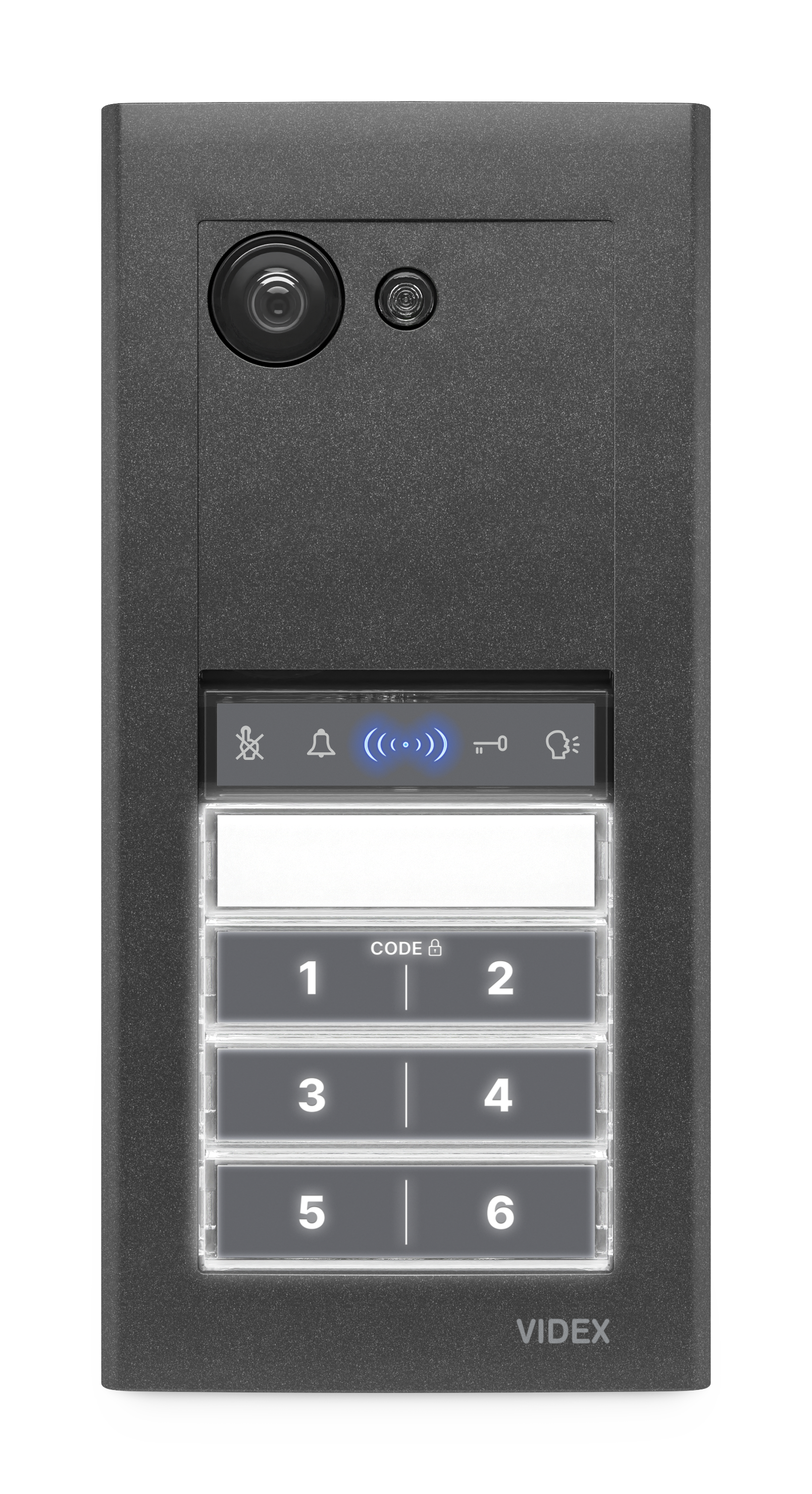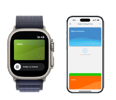 Grazie al lettore di prossimità MIFARE/NFC, il posto esterno supporta l’apertura tramite smartphone o altro dispositivo smart indossabile utilizzando l’app Videx Virtual Fob